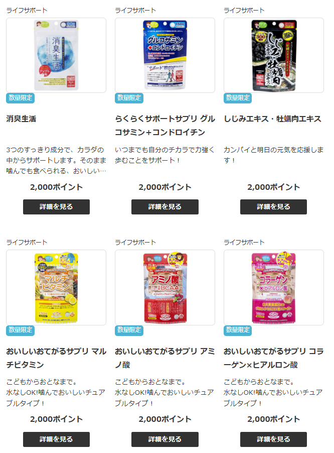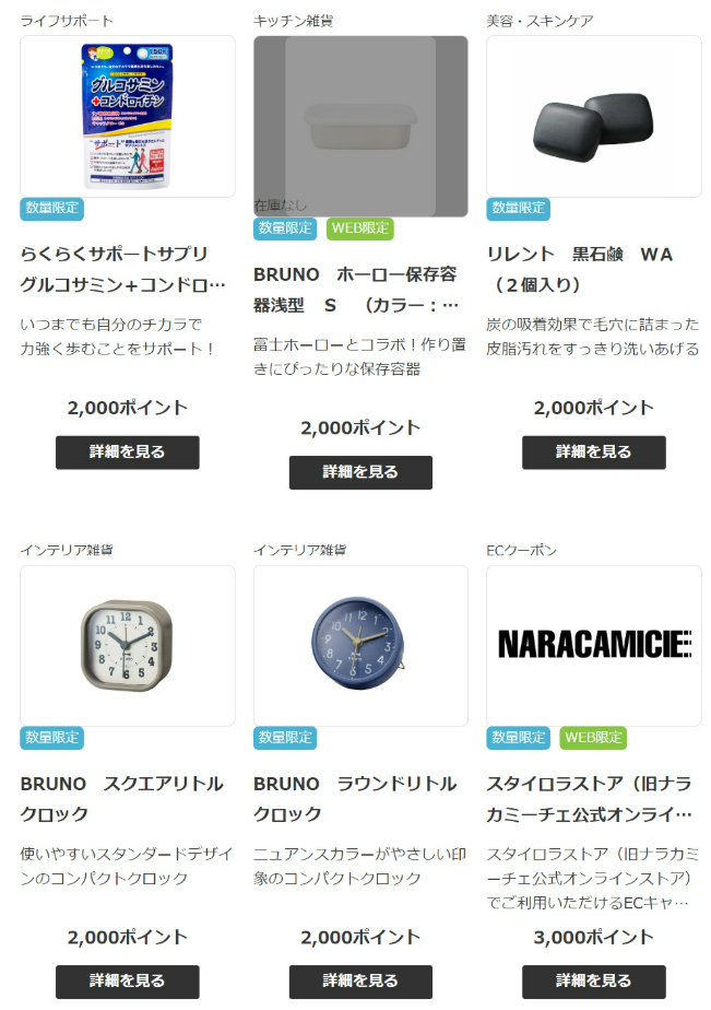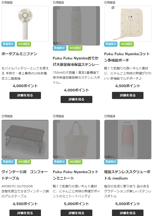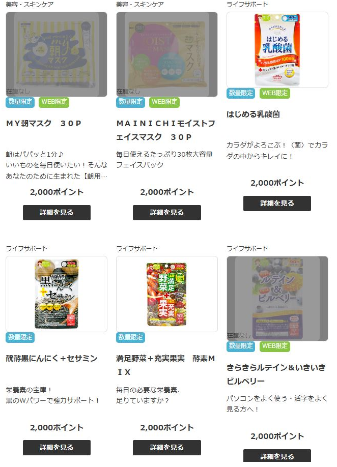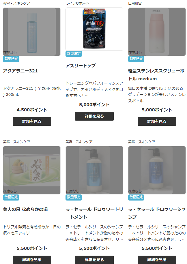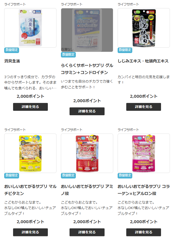 あとは、通常のネットショッピングのように自身の付与ポイントの範囲内でアイテムをカートに追加し注文するだけです。