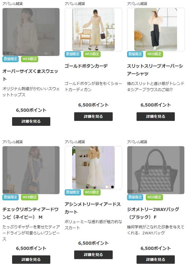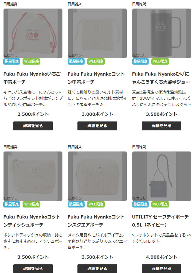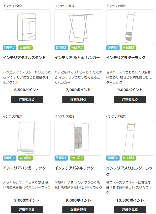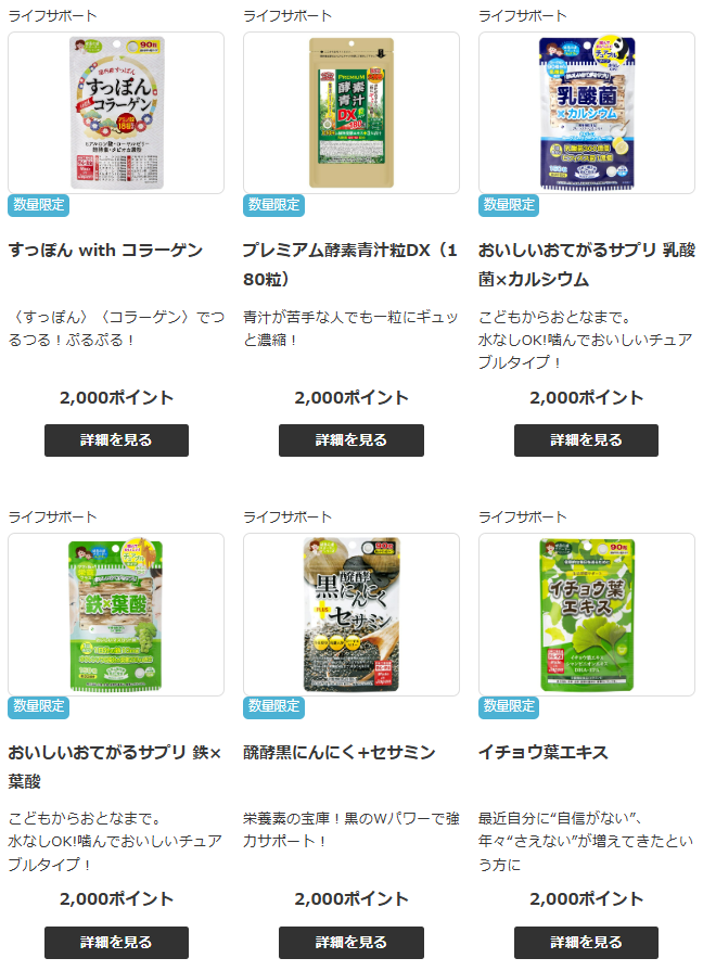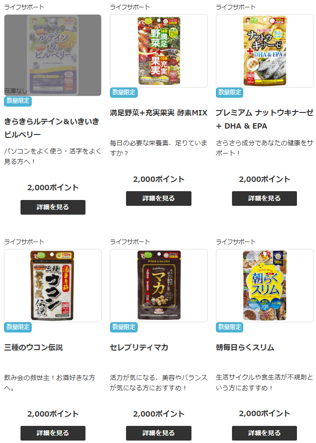 あとは、通常のネットショッピングのように自身の付与ポイントの範囲内でアイテムをカートに追加し注文するだけです。