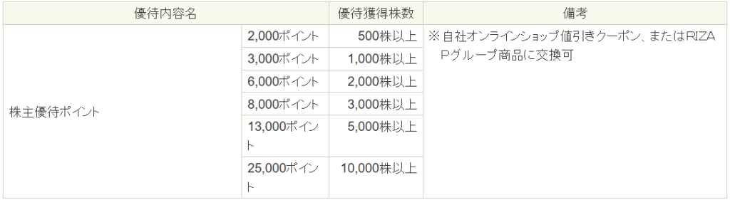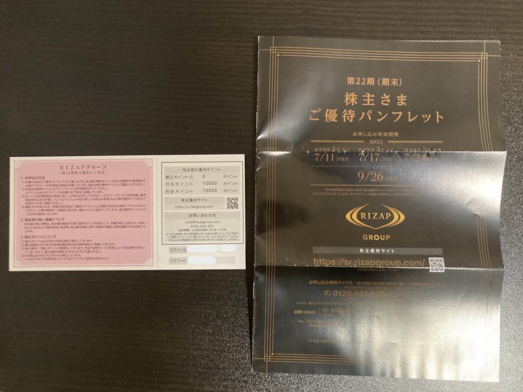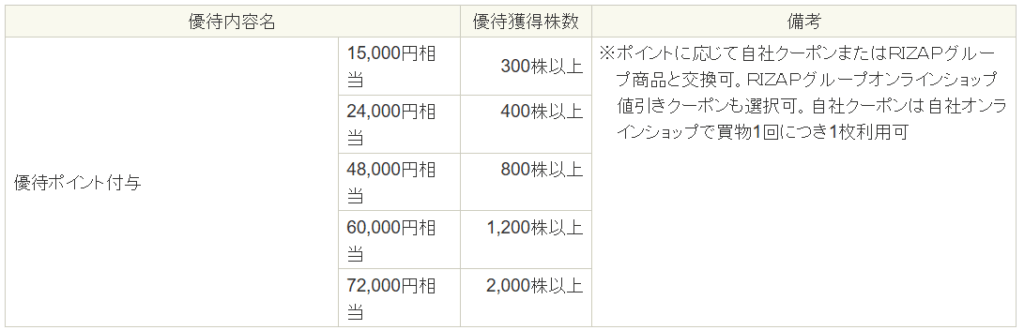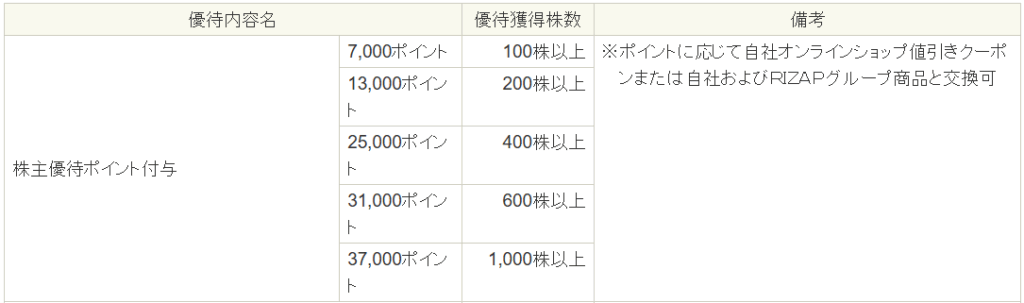 また、おまけにも記載しているように、RIZAP本体は優待ポイント以外の優待もあるというのはポイントが高いです。