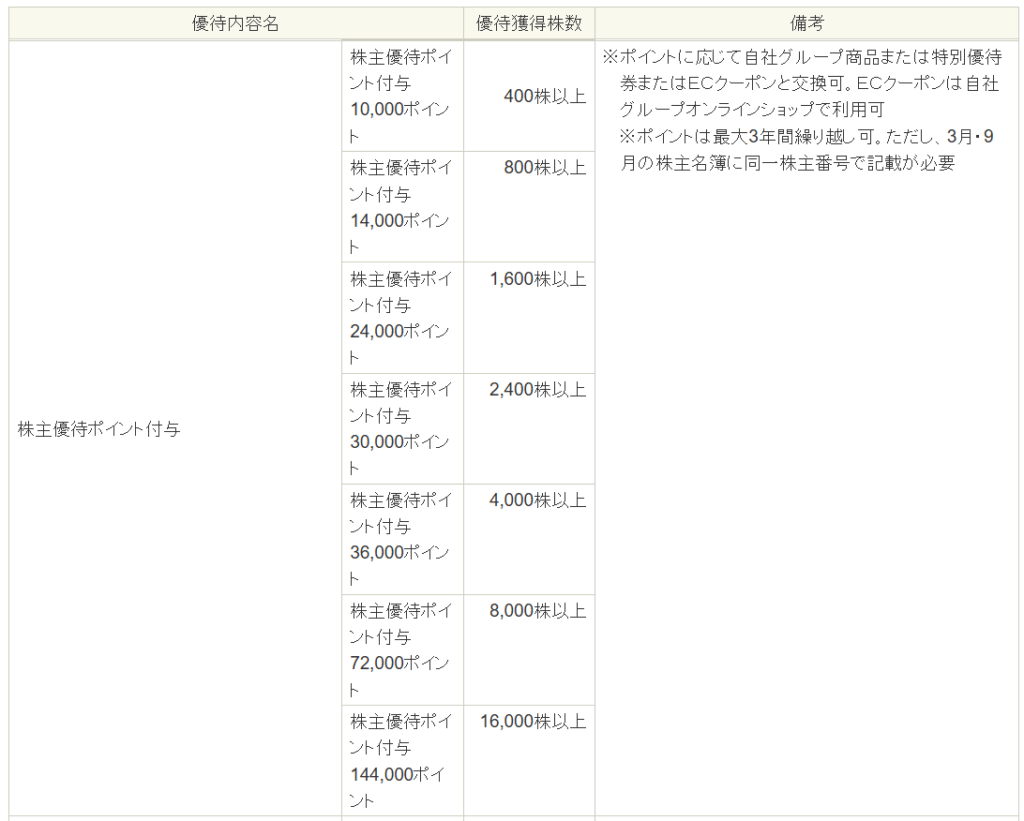 そのため、どうしても欲しい商品がある場合は(そもそも毎年商品ラインナップは少しずつ変わるため前年度あったからといって今年度であるとは限りませんが…)、その商品を買えるポイント数(銘柄ごとの比較を参照)を確認して余裕を持ったポイントがもらえるように保有株数を調整する必要があります。