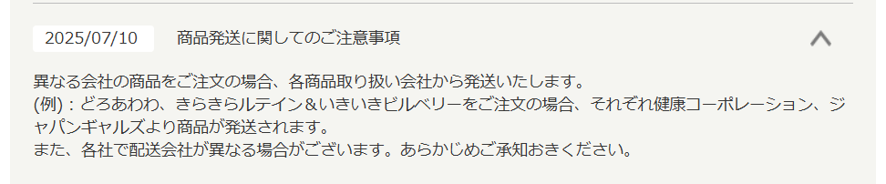 注文した商品は、注文後1週間~1ヶ月ほどで全て届きました。商品はすべて同じタイミングで届くわけでなく、カテゴリーごとに(厳密にいえば商品の販売会社ごとに?)発送されます。例えば化粧水とキッチン家電を購入すると、化粧水は1週間後に発送、キッチン家電は3週間後に発送といったように分かれて来ます。